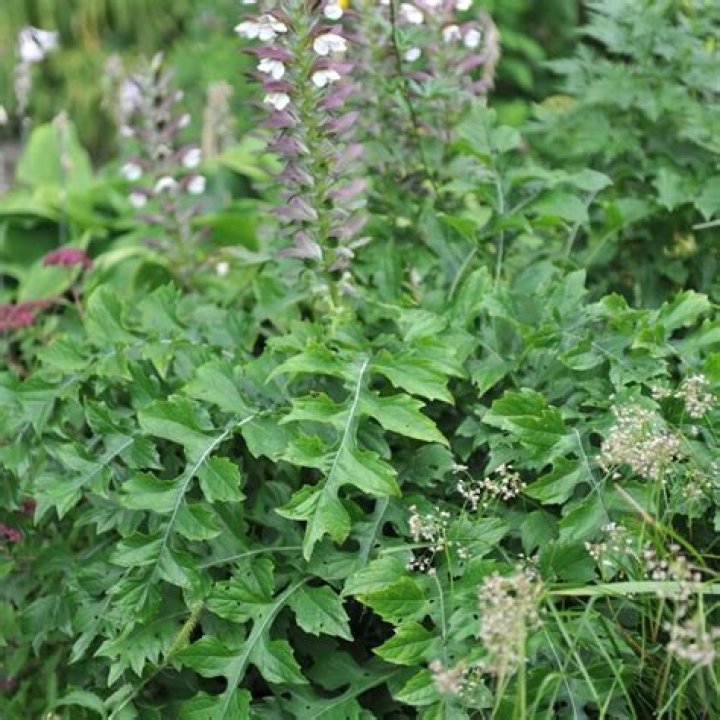 mollis is a vigorous clump forming species achieving heights of up to 5ft with its flowering spikes. Its leaves are deeply lobed and dark green. A. spinosus grows to a similar height and its flowers are similar but the leaves are more finely cut with more nastily spiny margins.