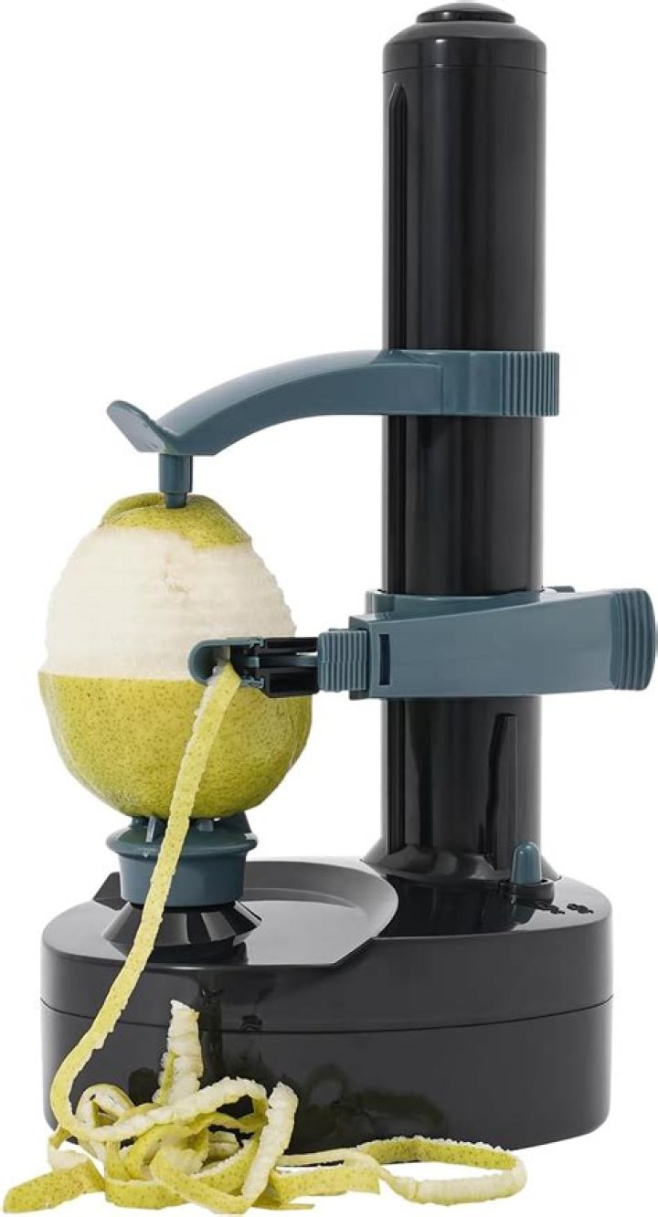 Plop on a potato, peel it and pare it in 10 seconds flat! The Electric Rotato Peeler instantly peels at the push of a button. It stops automatically when the peeling is over.