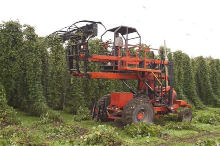 The main stop is at the picking machine, where entire hop bines are hand-loaded one by one and sent through the machinery that separates the desired hop cones from the rest of the plant material. … Hops are harvested with about 75% moisture content.