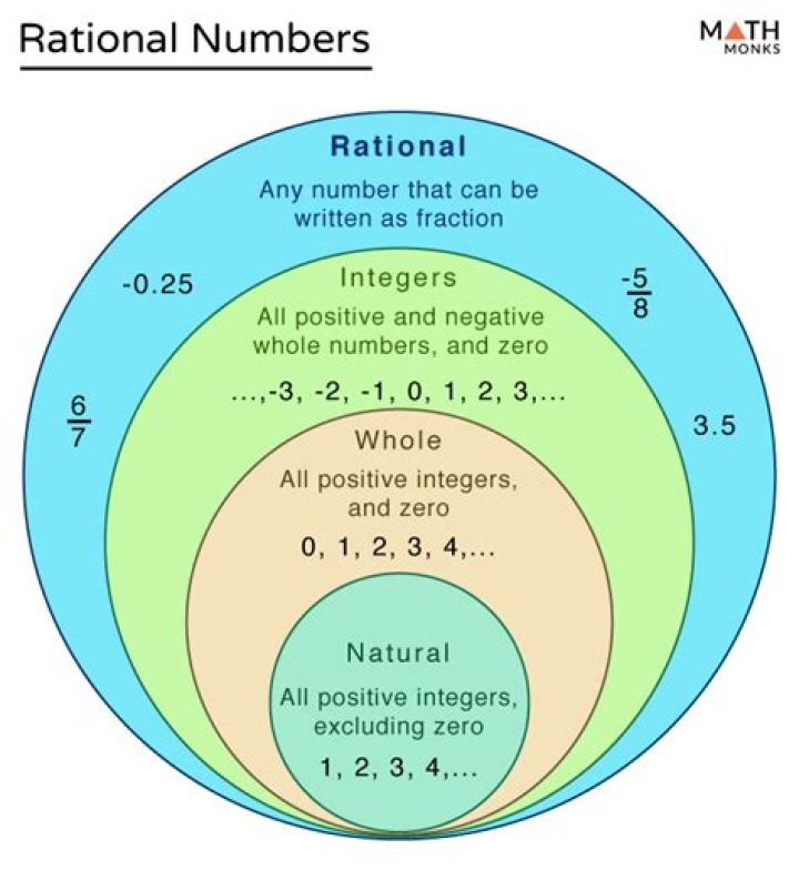 The rational numbers includes all positive numbers, negative numbers and zero that can be written as a ratio (fraction) of one number over another. Whole numbers, integers, fractions, terminating decimals and repeating decimals are all rational numbers.