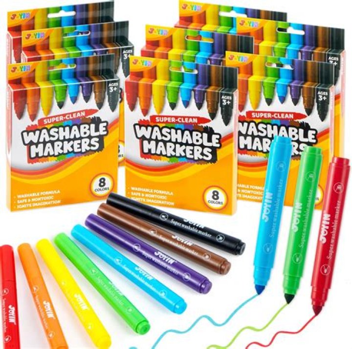 Perfect for art projects, crafts and homework assignments, these markers are essential coloring supplies for school and home. … Each of these washable markers washes from skin, most washable clothing and painted walls, and that’s why parents and kids love them.