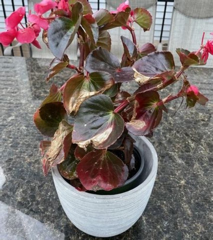 Widely sold as potted flowering plants, this makes a great patio plant when weather is mild. This plant comes in many colors including orange, red, yellow and pink. Avoid hot direct sunlight, and go for more filtered or shaded light outdoors.Why are begonia leaves turning brown?