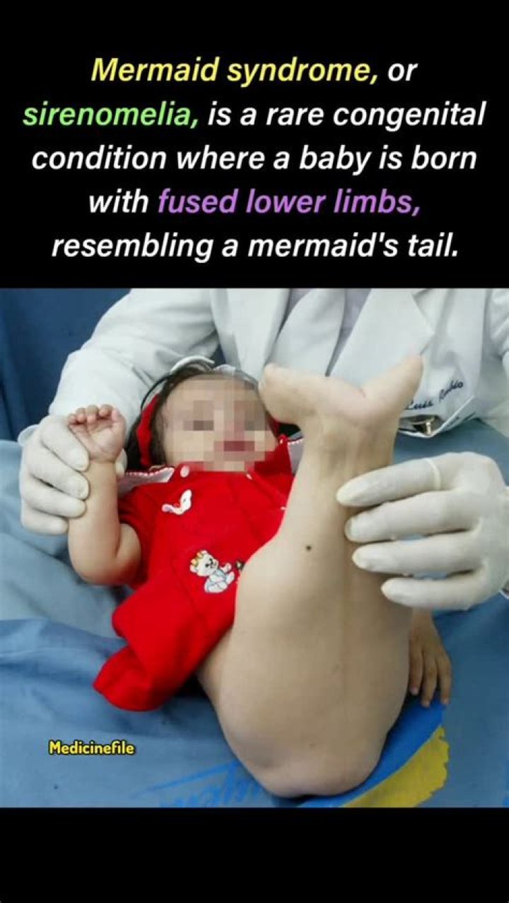 Sirenomelia, also called mermaid syndrome, is a rare congenital deformity in which the legs are fused together, giving the appearance of a mermaid’s tail, hence the nickname.