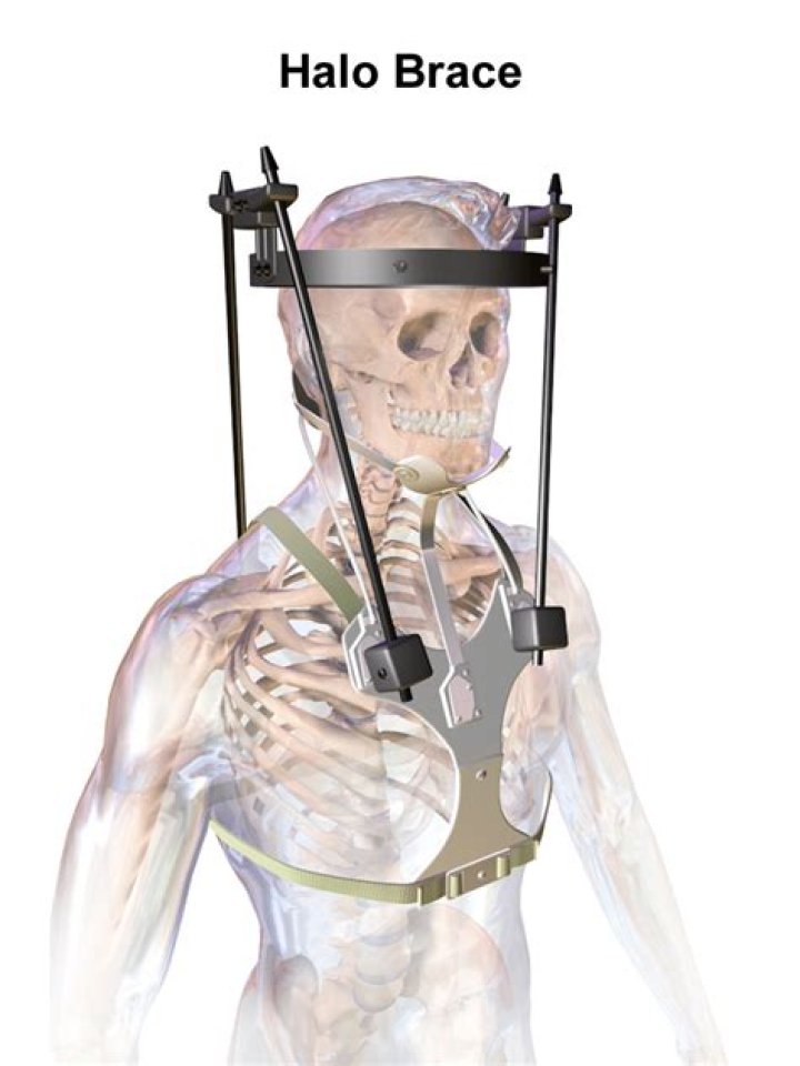 The halo and its jacket and rods hold the head still, so that the bones can heal. The pins in the halo are secured to the skull, which prevents any motion in the neck.How do you sleep with a halo brace?