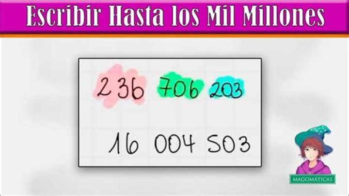 NombreNúmero de cerosGrupos de (3) cerosDiez mil4(10,000)Cien mil5(100.000)Millón62 (1.000.000)Mil millones93 (1.000.000.000)