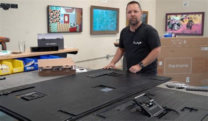 Samsung’s Frame TV is one of the coolest products that we carry at The Big Screen Store. … It comes with an integrated “zero gap” wall mount that allows the TV to be completely flush to the wall. It also comes with a separate box to hookup your devices, that can be hidden up to 15′ from the TV.