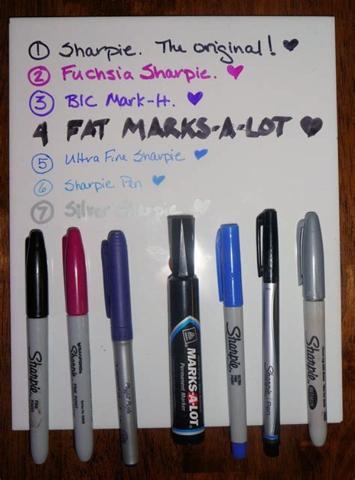 The trick, I discovered, is that the markers must be OIL BASED, not water-based (which regular sharpies are). … They do just fine with soap and water but the dishwasher means sure and sudden death to all your artistic effort.