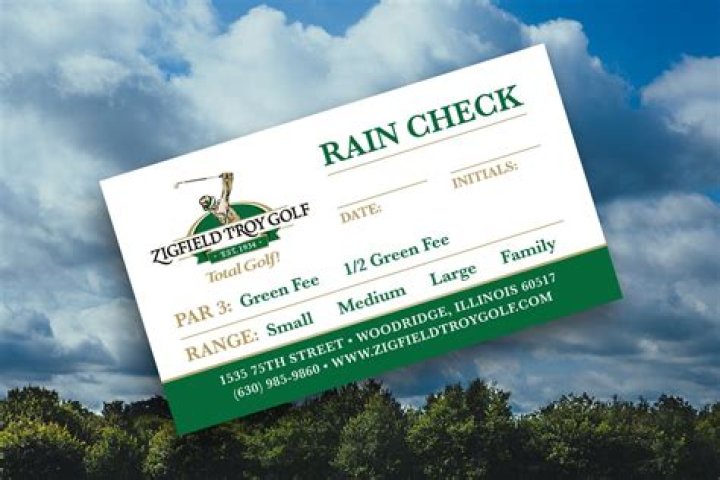 Rain checks will be issued when: The course is closed due to inclement weather when you are scheduled to tee off and you have paid in advance. It is raining, and you have not teed off, but already paid and checked in. Inclement weather lasting more than 30 minutes interrupts your round.