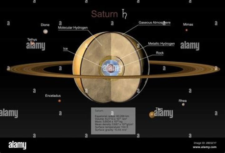 Saturn’s interior is most likely composed of a core of iron–nickel and rock (silicon and oxygen compounds). Its core is surrounded by a deep layer of metallic hydrogen, an intermediate layer of liquid hydrogen and liquid helium, and finally a gaseous outer layer.Is Saturn hot or cold?
