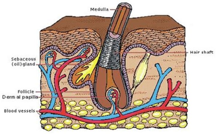 A hair follicle is a tunnel-shaped structure in the epidermis (outer layer) of the skin. Hair starts growing at the bottom of a hair follicle. … As more cells are created, the hair grows out of the skin and reaches the surface. Sebaceous glands near the hair follicles produce oil, which nourishes the hair and skin.What is papilla in biology?