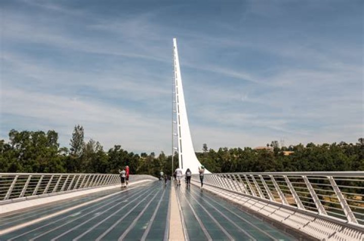 The Sundial Bridge is one of the two bridges in the U.S. designed by the famous architect Santiago Calatrava. … The bridge is over 700 feet and crosses the Sacramento River. The part of the bridge that you walk over is actual made out of frosted glass. They even light it up at night and the glass glows.Is Sundial Bridge a sundial?
