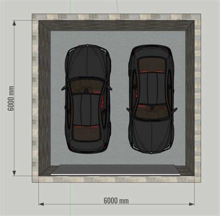 Double Garages For a double car garage 5.8m x 5.8m (internal measurements) is considered as a common standard two-car garage size. With this size you can fit two sedan style vehicles. If you prefer smaller cars, you may be able to get away with 5.6m deep x 5.8m wide.