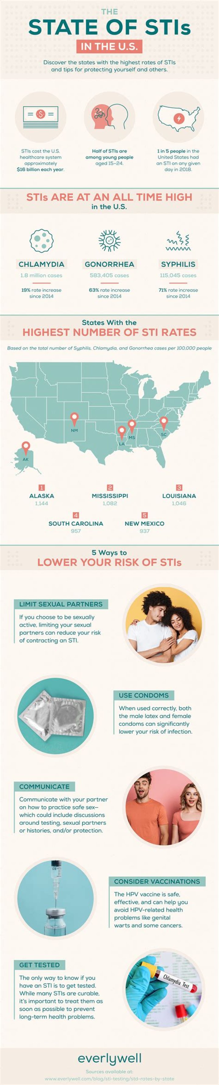CDC estimates indicate about 20 percent of the U.S. population – approximately one in five people in the U.S. – had an STI on any given day in 2018, and STIs acquired that year will cost the American healthcare system nearly $16 billion in healthcare costs alone.