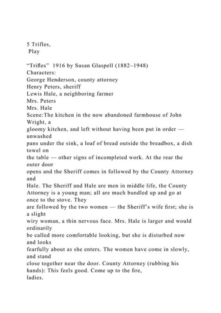 Article first time published onWhat is the time period of Trifles?