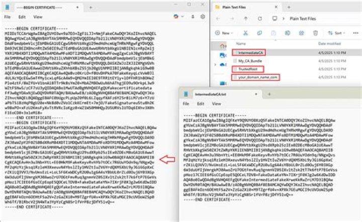 Log into your DigiCert Management Console and download your Intermediate (DigiCertCA. crt) and Primary Certificates (your_domain_name. … Open a text editor (such as wordpad) and paste the entire body of each certificate into one text file in the following order:
