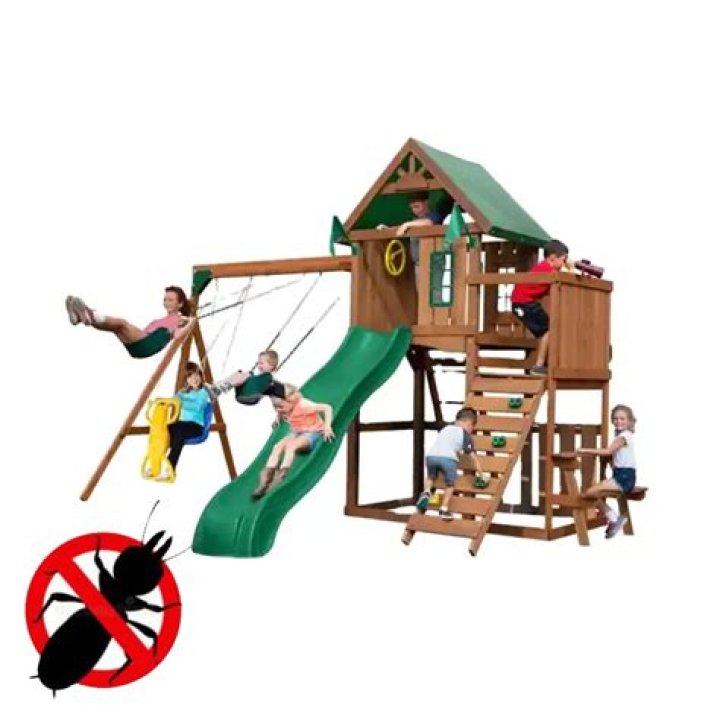 Create a Concrete Base. Putting your playset on a concrete platform will dramatically reduce the amount of insects that make it to your children. … Put Up a Netted Canopy. … Use Outdoor Candles. … Move the Playset around.