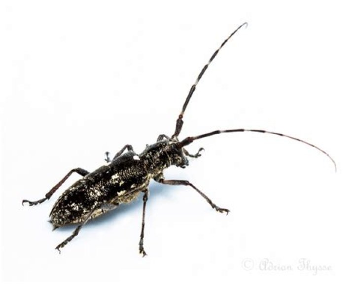 Black, long antennas. They bite hard. Can be smaller in size and large. Them spruce beetles bite like angry demons.