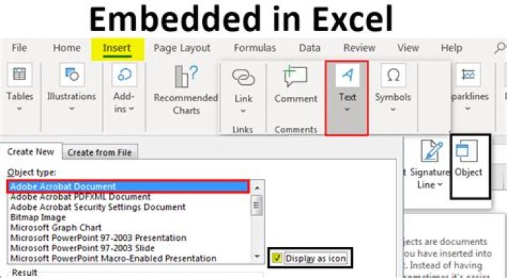 In Microsoft Excel, the Object Insert option allows a user to insert an external object into a worksheet. Embedding generally means inserting an Object from another software (Word, PDF, etc.) to an Excel worksheet.
