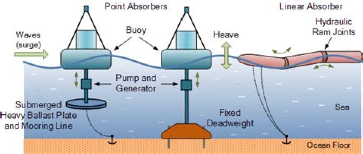 The point absorber is a type of wave energy device that could potentially provide a large amount of power in a relatively small device, compared to other technologies. … Point absorbers are relatively small compared to wave length, and may be bottom mounted or floating structures.