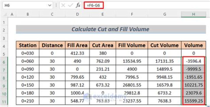 Once the cut or fill depth is calculated, multiply the value by the area of the grid cell. Do this for each square of the grid, then add the volumes together to determine the total cut and fill volumes for the project.