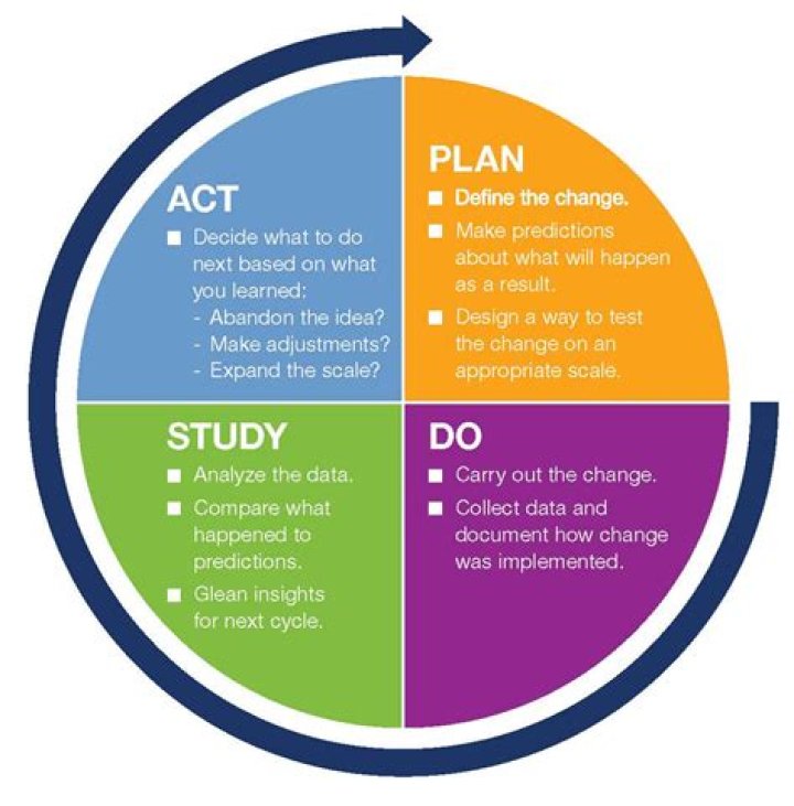 - The Plan, Do, Study, Act (PDSA) cycle tests and implements changes in actual work settings.