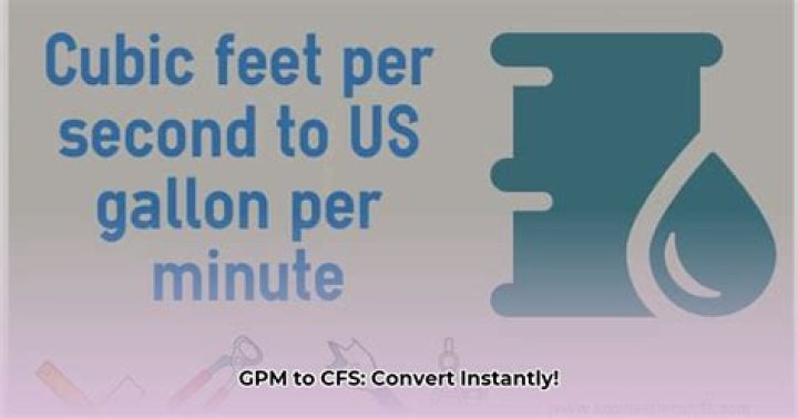 Conversion formulas Cubic feet per second , US gallon per minute (cfs, ft3/s, gpm): cfs= 448.8325660485*gpm. gpm= cfs/448.8325660485.