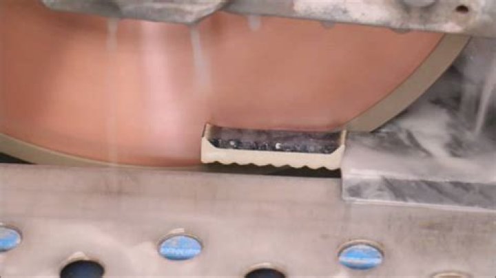 - Turn on the wet saw and very slowly push the glass into a blade designed for cutting glass.
