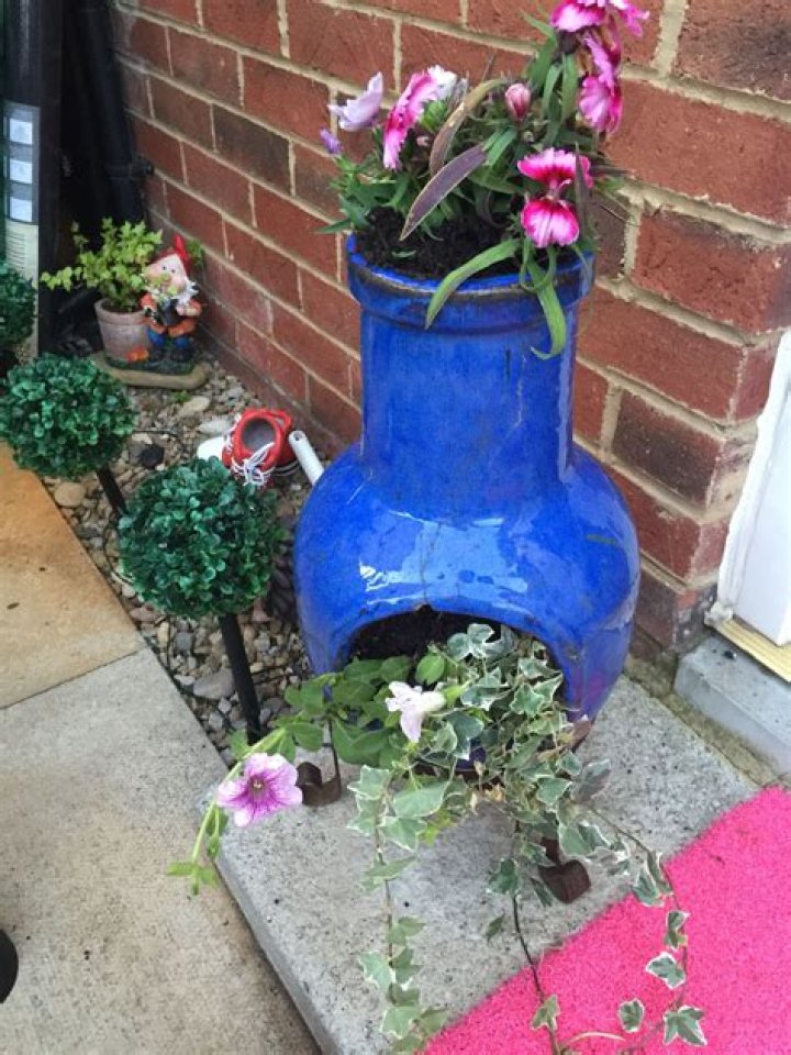 Made from clay, chimineas consist of a bulb-shaped base that narrows upward into a tubular chimney. Despite being designed to withstand the heat from fires, many still crack over time. They can also crack easily if dropped or bumped.