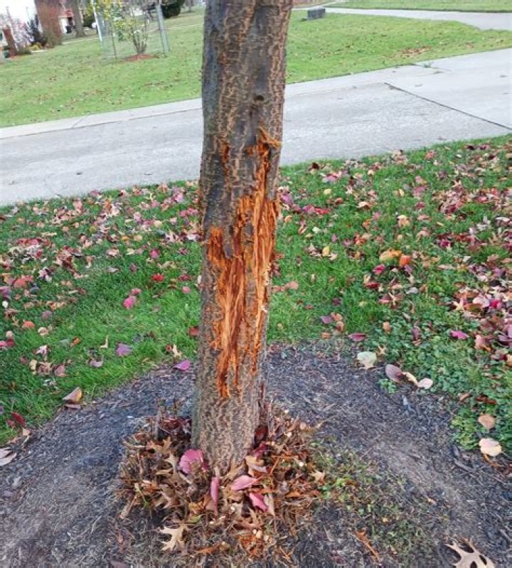 Trees can heal after a surprisingly large amount of damage. Trim off any loose, shredded bark where it’s not connected tightly to the trunk. If possible, cut the wounds into an elliptical or football shape to help the tree recover more quickly, but do not dramatically enlarge the wound to do this.
