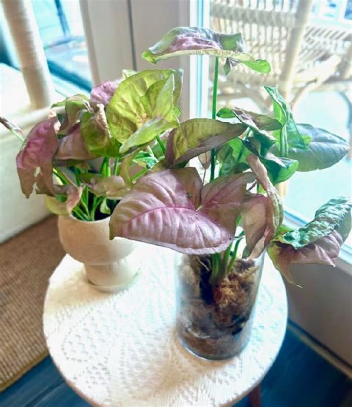 Syngonium pink is easy to care for plant that is well adapted to indoor environments.As a young plant, its leaves start out heart-shaped, then gradually become arrowhead shaped as it matures.