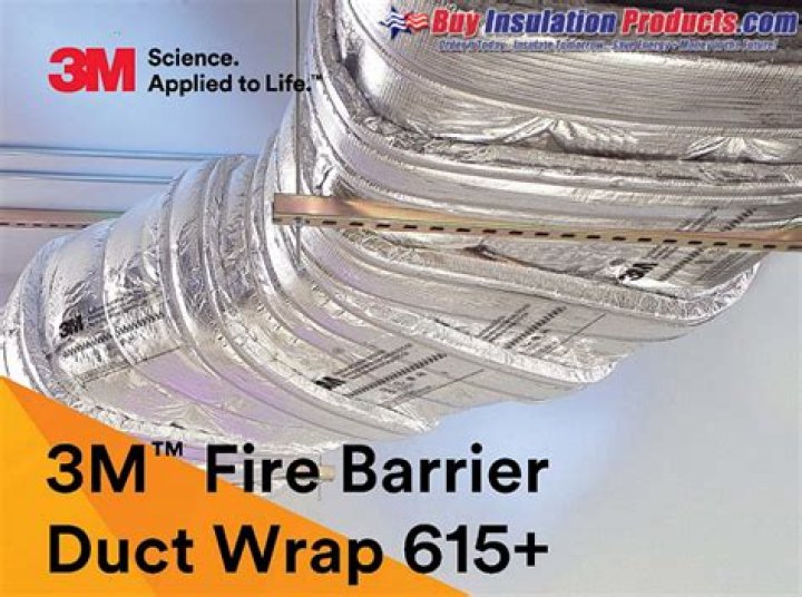 3M™ Fire Barrier Duct Wrap 615+ is a fire-resistant wrap consisting of an inorganic fibre blanket encapsulated with a scrim-reinforced foil. The blanket adheres to the foil scrim on the 3M™ Fire Barrier Duct Wrap 615+, which helps prevent wrapping and slumping before and after application.