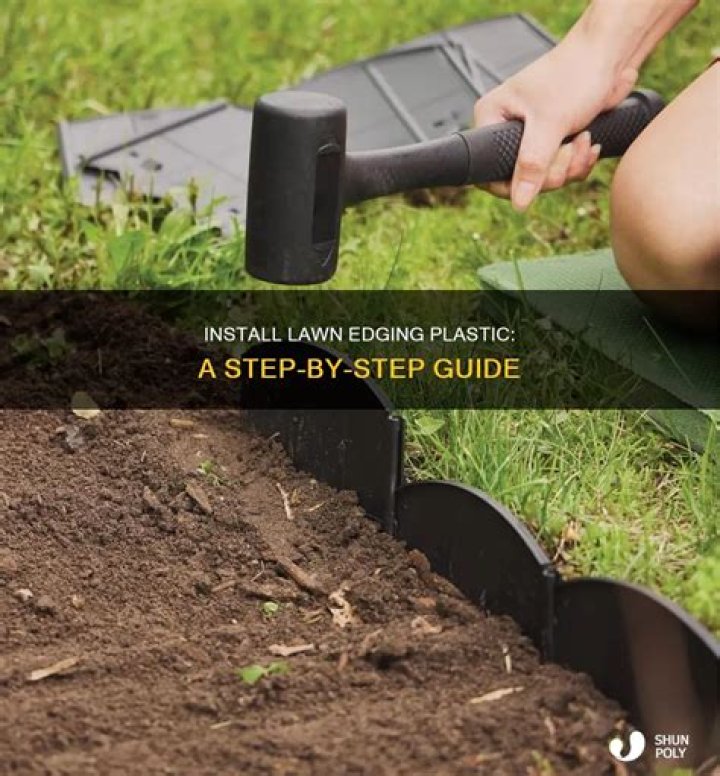 To install plastic edging between a lawn and a garden, inset a spade vertically all along the turf edge to a depth equal to the edge’s height, and push the earth forward, toward the garden, creating a trench with a vertical wall on one side and a wall with about a 45° angle on the other.
