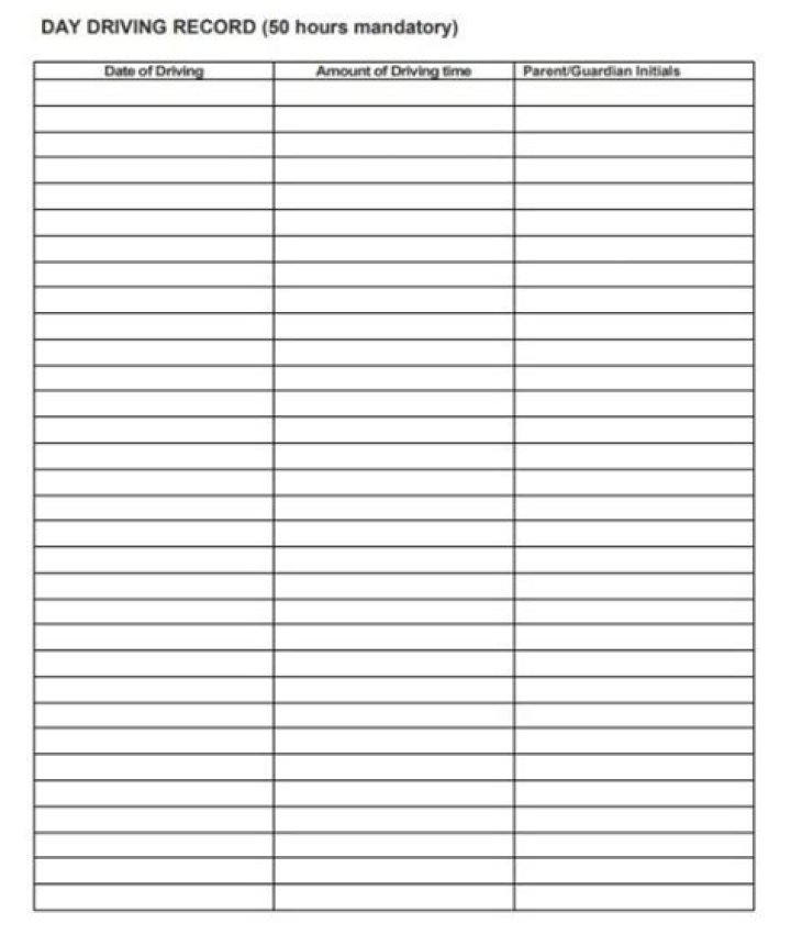 Note: the Driving Log must list at least 40 hours of driving, including 6 hours at night, and may be one or more pages.