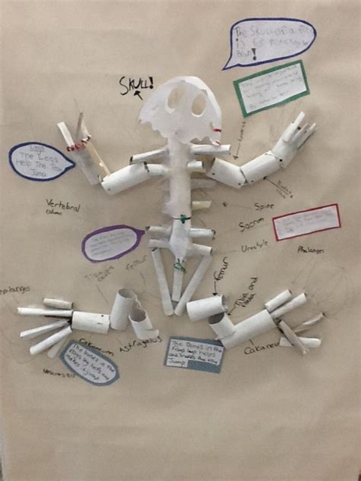 Paper Skeleton Model Make a paper skeleton by drawing bones on sturdy card stock. Cut out the bones and attach to each other at the joints with metal brads. This will allow you to pose your skeleton in a variety of positions. Another idea is to trace and cut the bones of the skeleton from white foam craft sheets.