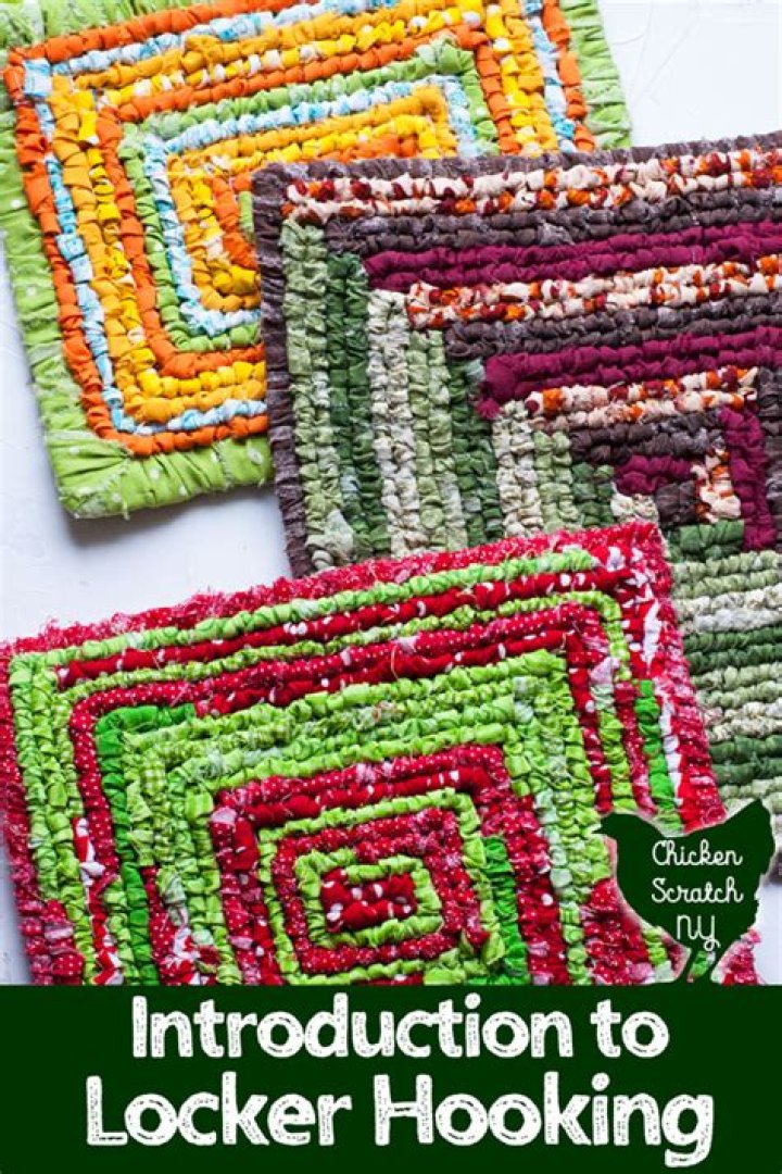 Locker hooking is done with a 1 inch wide piece of cloth or yarn with 36 inch long pieces of cotton twine. Hooked rugs are made with thin strips of wool, linen, recycled or remnant cloth.Where should I start my latch hook rug?