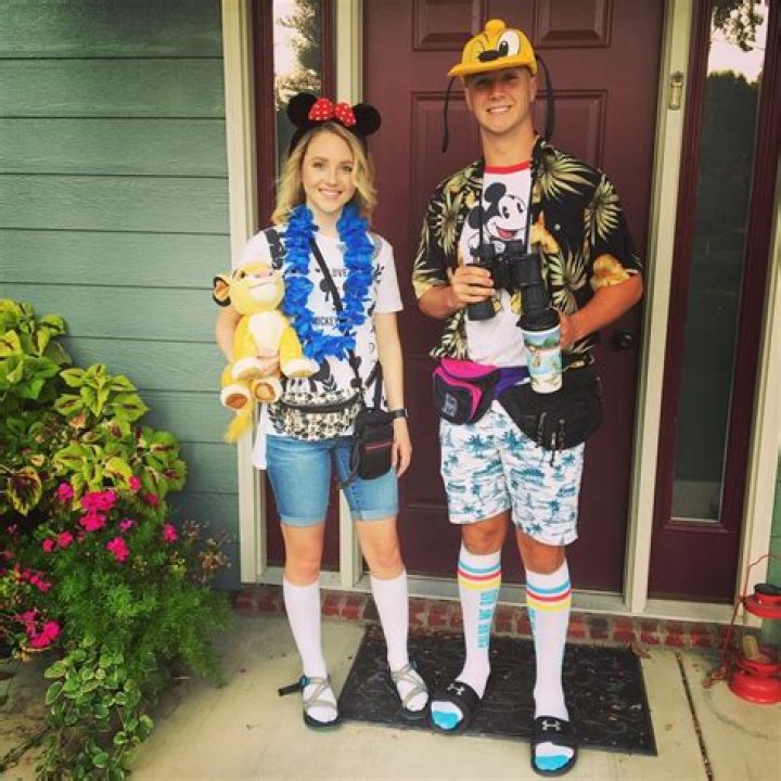 Wear baggy khaki shorts that hang to your knees. Top the shorts with a Hawaiian shirt in a bright, bold pattern. … Use socks and sandals for your tacky tourist footwear. … Accessorize your men’s tacky tourist costume with a sun visor that’s made from straw, canvas or transparent colored plastic.