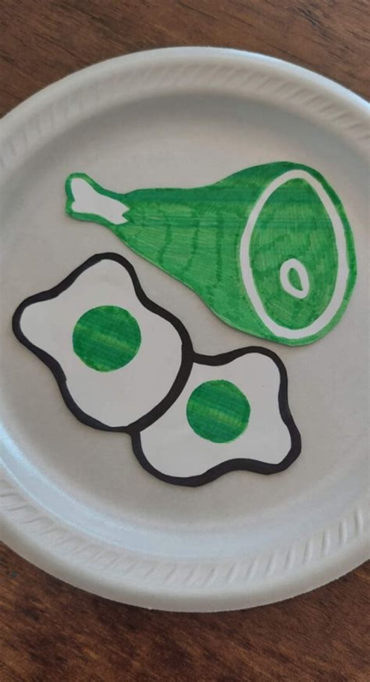- Put glue on one half of a folded egg and attach it to the half of another paper cutout.