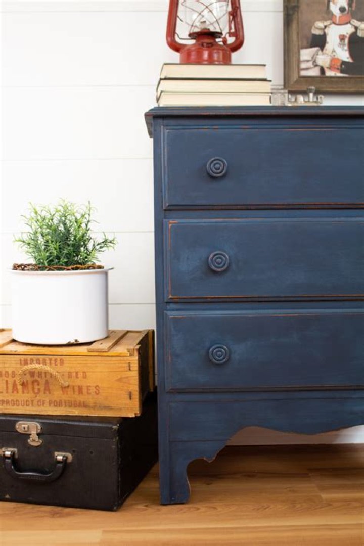 The most popular technique for distressing a piece of furniture (or any decor for that matter) is to simply sand the piece. To do this technique, simply paint your piece in the desired color and then go back with a sanding block or piece of sand paper and sand down the edges slightly, to give that weathered look.