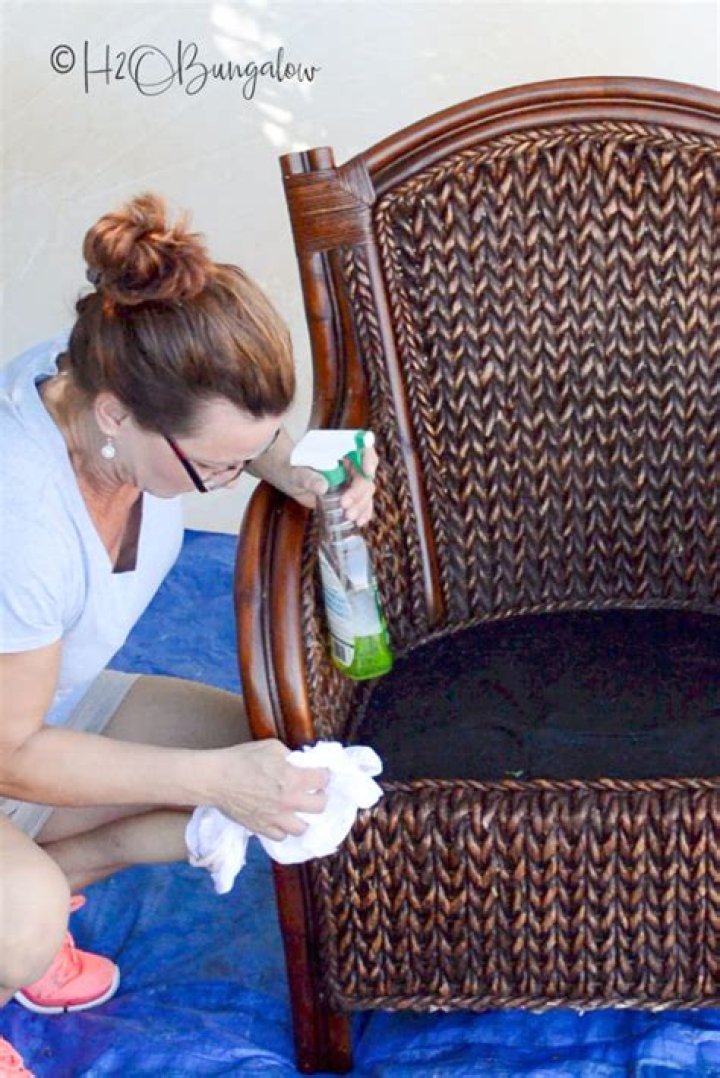 Use a wire brush with a scraper to remove old paint and rust from the solid portions of wicker furniture. After wiping off loose dirt, wash the furniture with a sponge and liquid detergent. Keep the sponge damp rather than wet, and use as much foam as possible. For mildewed areas, add 1 cup bleach to the water.Can you paint over wicker furniture?