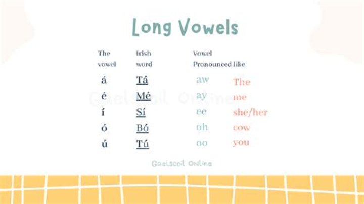 The long vowels are: í as in sí pronounced “shee” é as in sé pronounced “shay” ú as in tú pronounced “too”How do Irish vowels work?