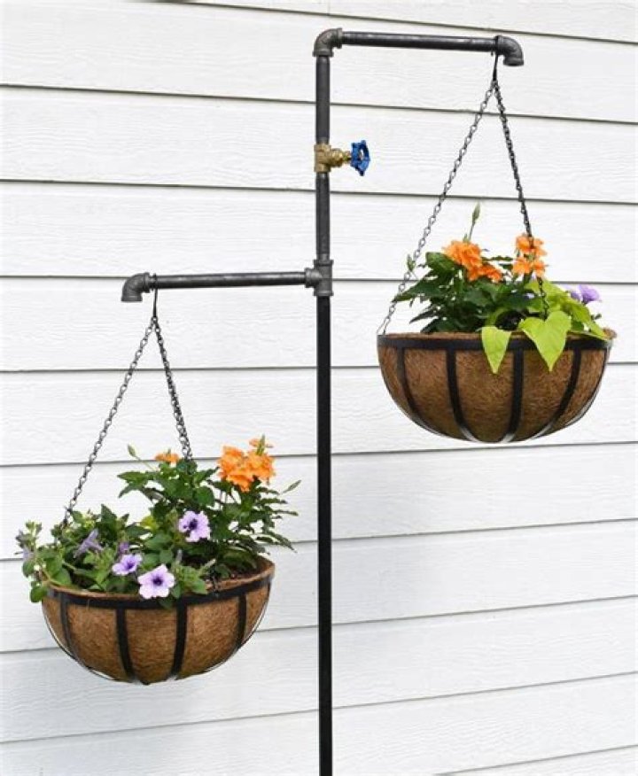 Choose a shepherd’s hook that is sturdy enough to support the weight of the planter when the soil in the planter is wet and tall enough to suspend the planter at the desired height above the soil.
