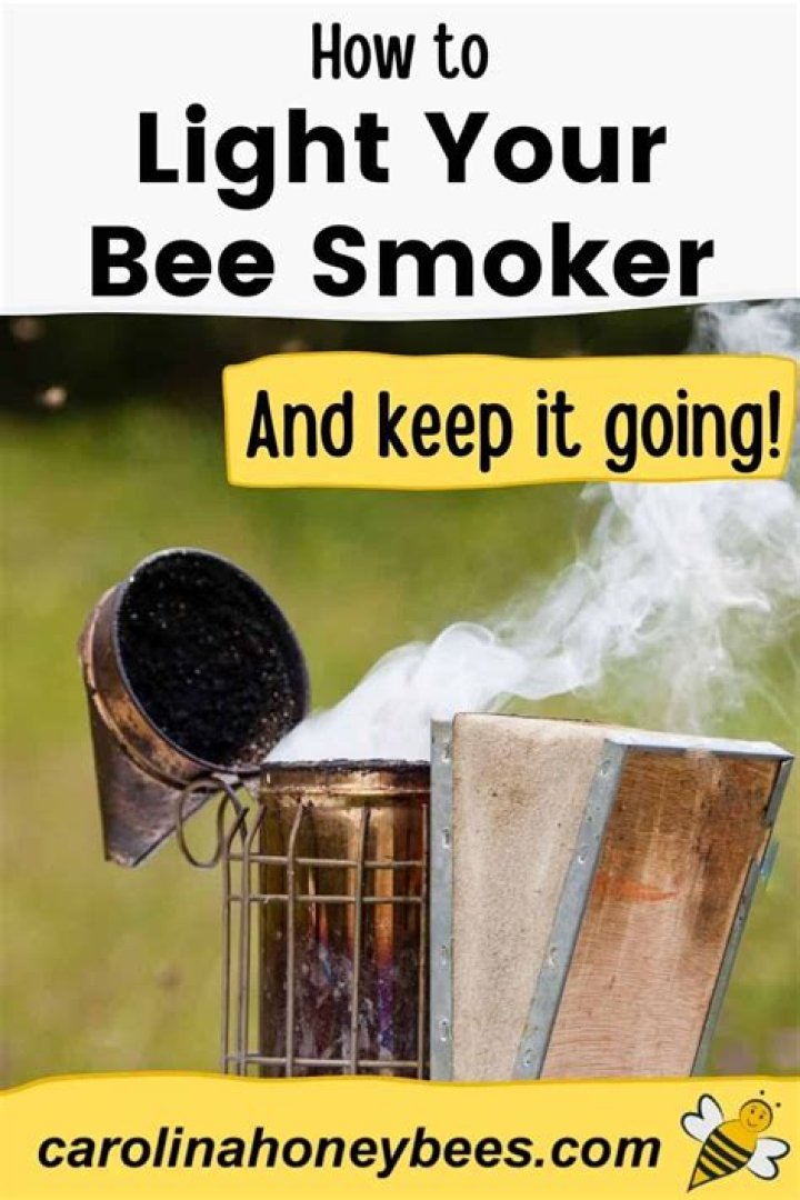 add wood pellets/shavings/pine pet bedding a little at a time. Keep puffing strongly for 20-30 seconds and adding more wood chips until smoker is ⅔ to ¾ full. The shavings should be somewhat densely packed in, and the smoker will give out billows of light gray smoke. … Bees retreat from smoke.