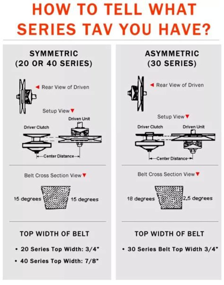 Driven unit: 5/8″ driven pulley: Drive clutch bore: 19.05mm (3/4″) Belt: Asymmetrical type.