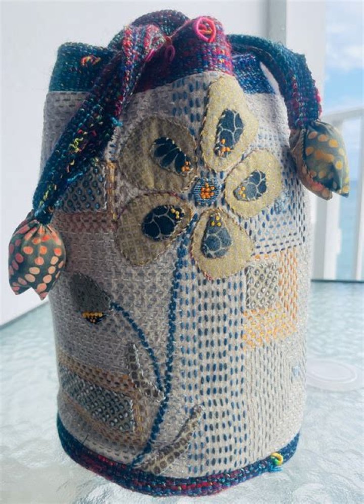 Steps to open the bag: Again make sure you turn the bag so the single stitch side of string is facing you. Looking at the single stitch side and follow it to the far right end of the string. Undo the first little loose knot by pulling the string tail out of the loop.