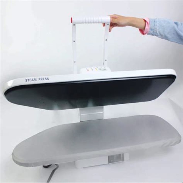They use a flat surface to apply pressure, combined with heat and steam to relax the wrinkles. However, the pressing plate in a steam press can be more than 10 times larger than an iron. This large flat plate gives perfect results in no time at all.