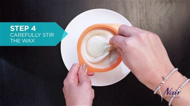 Skin should be dry to the touch, not hot and humid. If you’ve just showered, let the room air out before you start your waxing session. 3) Heat the full tub of Nair Cire Divine Bye Bye Ouch resin wax in the microwave for one minute 45 seconds.