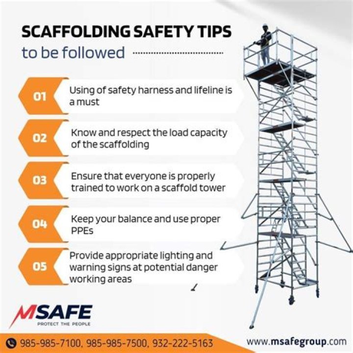 Use proper safety equipment. … Mind load limits. … Know all relevant regulations and standards. … Inspect scaffolding materials. … Build properly. … Inspect the site and equipment – again. … Keep vehicles and heavy equipment clear. … Stay organized.