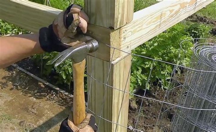 Unroll it down the length of the fence to the next corner post. Open the tabs on a T-post one at a time from the bottom to the top of the post. Insert the wire mesh into the bottom tab and squeeze it shut with pliers. Continue attaching the wire mesh from the bottom to the top of each pole.How do you ensure a fence post is straight?