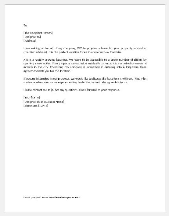 A lease is a legal, binding contract outlining the terms under which one party agrees to rent property owned by another party. The lease guarantees the tenant (also known as the lessee) use of the property and guarantees the lessor—the property owner or landlord—regular payments for a specified period in exchange.What is a proposal letter?