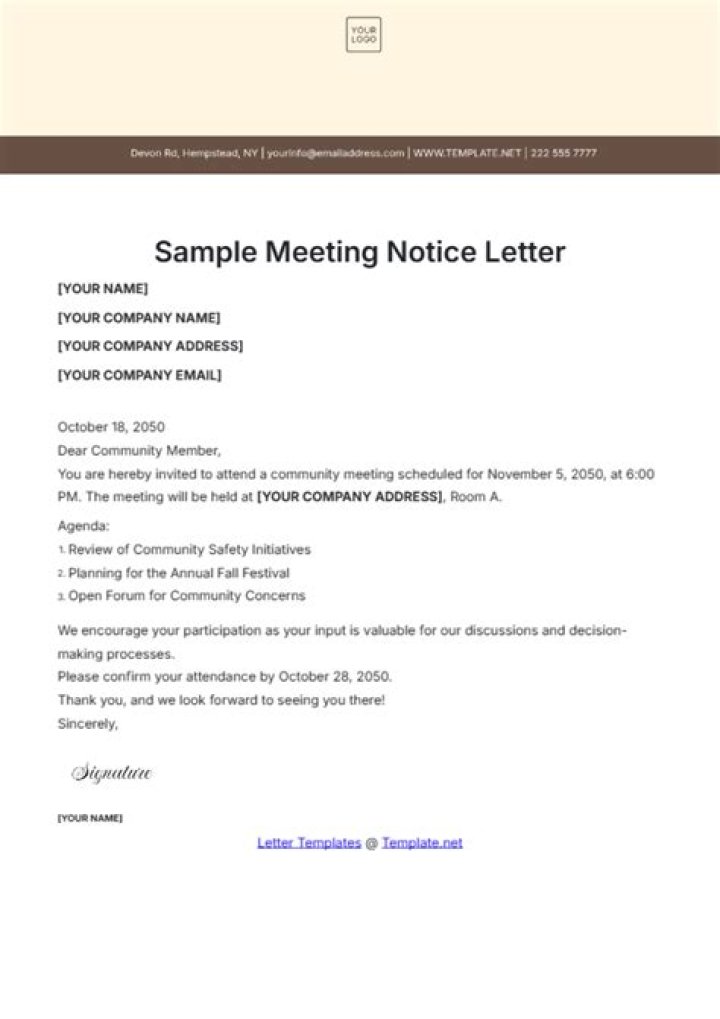 The notice of meeting informs the members when and where the meeting will be. The agenda informs the members what is to be discussed and done at the meeting so that the members can decide: if they want to attend the meeting; and.What is a notice in business?